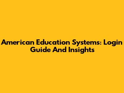 American Education Systems: Login Guide And Insights